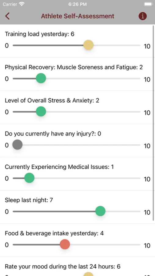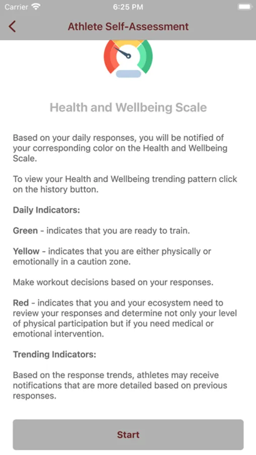 * Athlete Self-Assessment (Self-Efficacy Questionnaire): CWP has partnered with SVEXA’s Athlete Advisor, by integrating their proprietary daily athlete check-in questions into Athlete MH LINK. This option is currently ONLY available for Branded Versions of the app. The 9 daily questions are meant to increase athlete overall health and emotional self-efficacy, as well as provide feedback to the athlete and their sport ecosystem to create the best training and recovery plan by joining an “Admin Room”. **Athletes determine who (if anyone) has permission to view their results from their designated sport organization staff. (Athlete View Section- is how athletes can review which “Admin” rooms they have joined.)