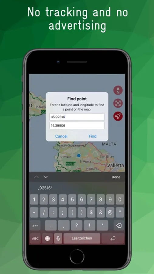 A location function shows the current position, the app is ad-free and there is no tracking.