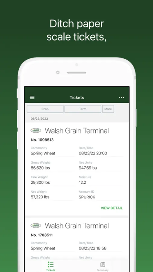 With a robust toolset that's constantly evolving to meet the demands of the modern grower, your Walsh Grain Terminal app is built with powerful features to help you save time and maximize profits, including: