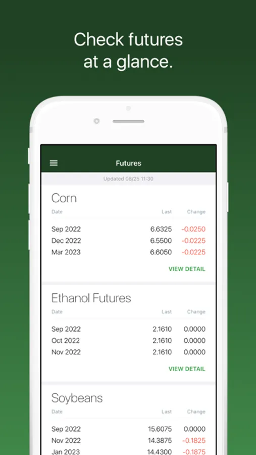 Futures: See Grains, Feed, Livestock, and Ethanol futures listed in order of your preference