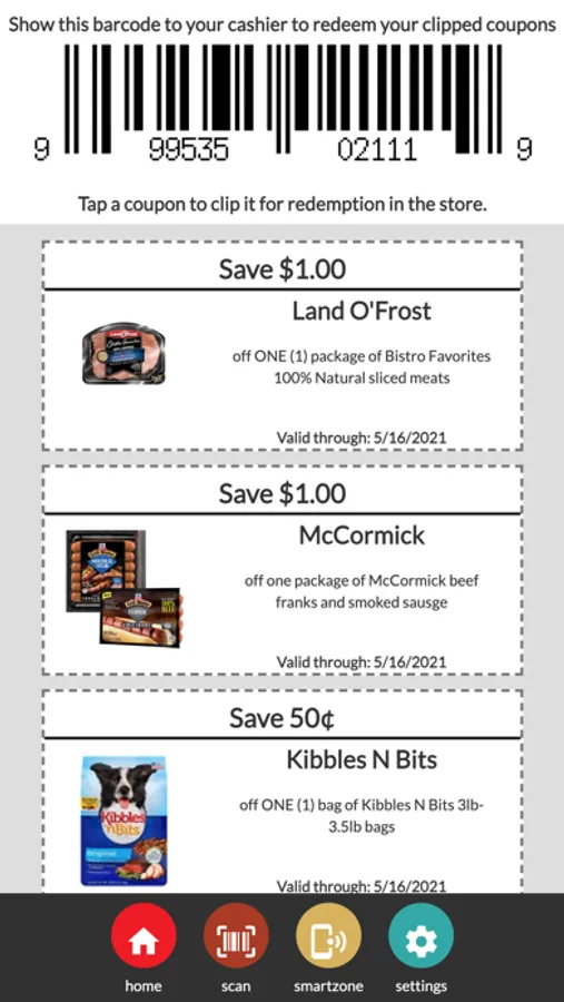 - SmartZone alerts (special offers triggered via beacons and QR codes throughout the store or via push notifications when you are not in the store)