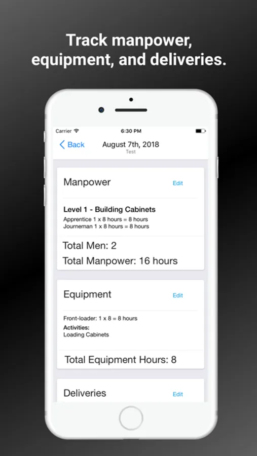 With the Kapture daily construction reporting app, subcontractors can submit daily reports the include manpower, equipment and deliveries.