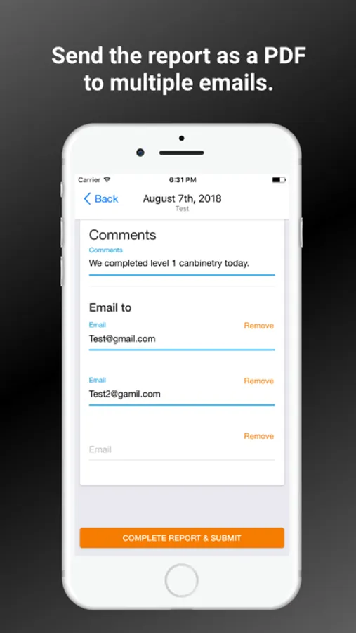 When the report is submitted, a PDF version of the report is emailed to any emails you'd like.