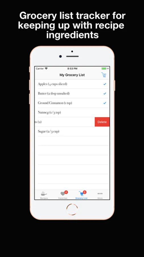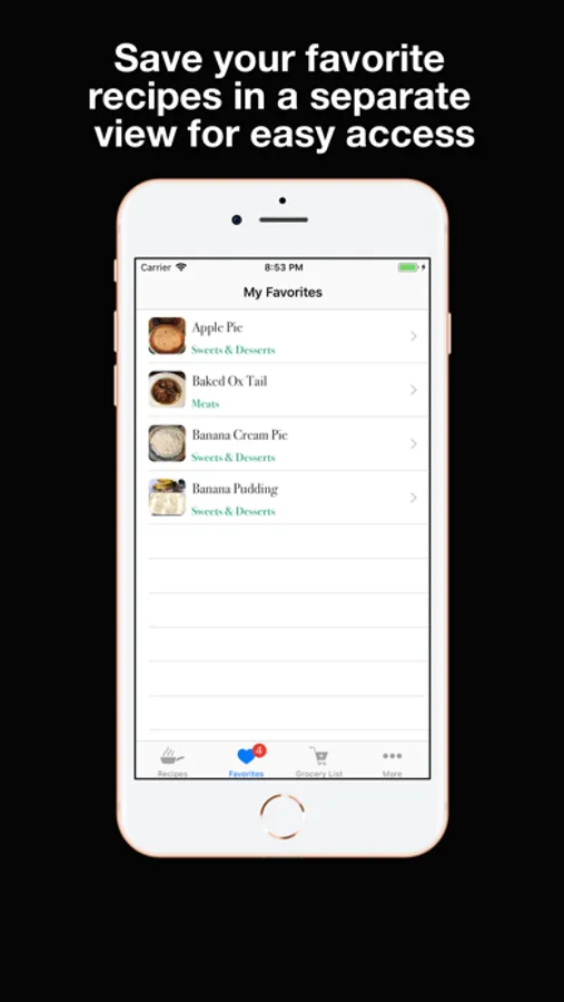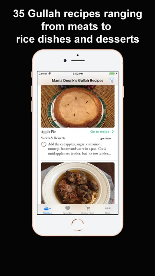 There are many features such as the grocery list and ingredients tracker, the ability to save your favorite recipes, filter recipes by category, quickly search recipes by name and the Gullah Heritage and History video, which are exclusive to the app version.