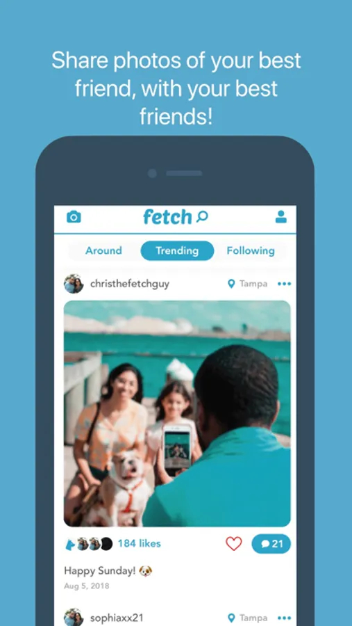 Fetch is a social platform that connects the dog community. Through our app, users create and develop relationships by sharing photos of their pups, scheduling dog park play-dates, and engaging with our worldwide community.