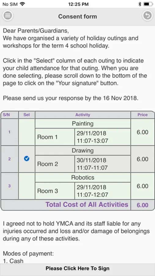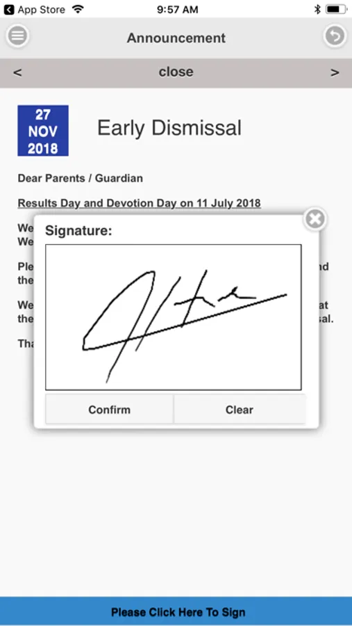 Functions for parents to check their child's attendance, outstanding payments and receive announcements.