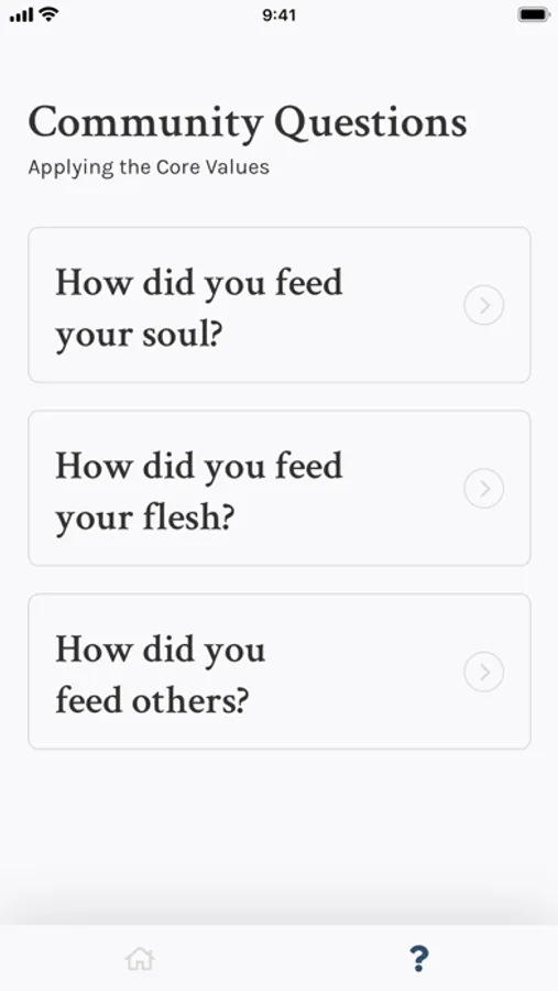 Each section of the app provides application questions to help facilitate community conversations focused on living out the one another’s of Scripture.