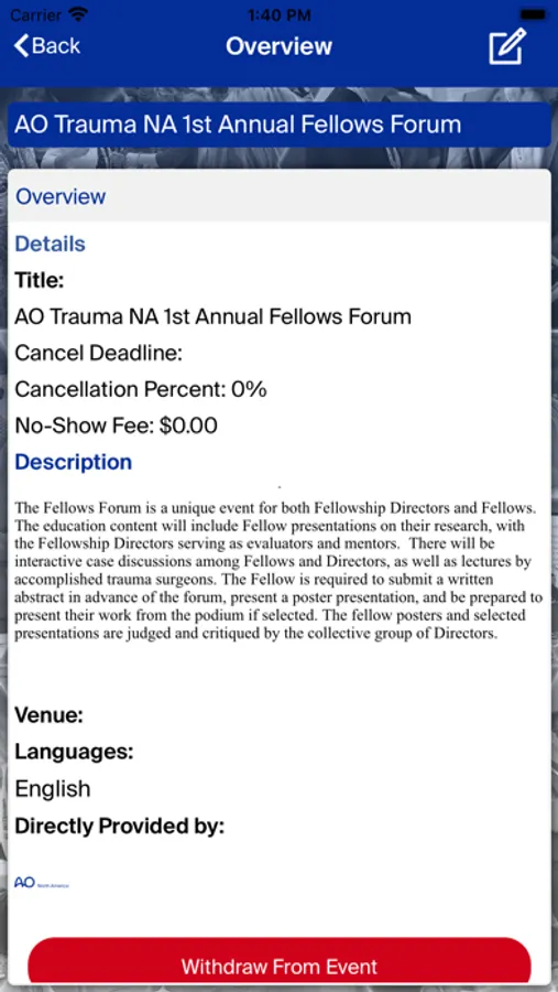 The AO North America Event app is a resource for you while attending one of our courses. You can stay up to date and informed about our current and future events right at your fingertips. Designed as your single go-to source, you can: view schedules, course materials, venue information and faculty bios. You can access your CME directly from the app.