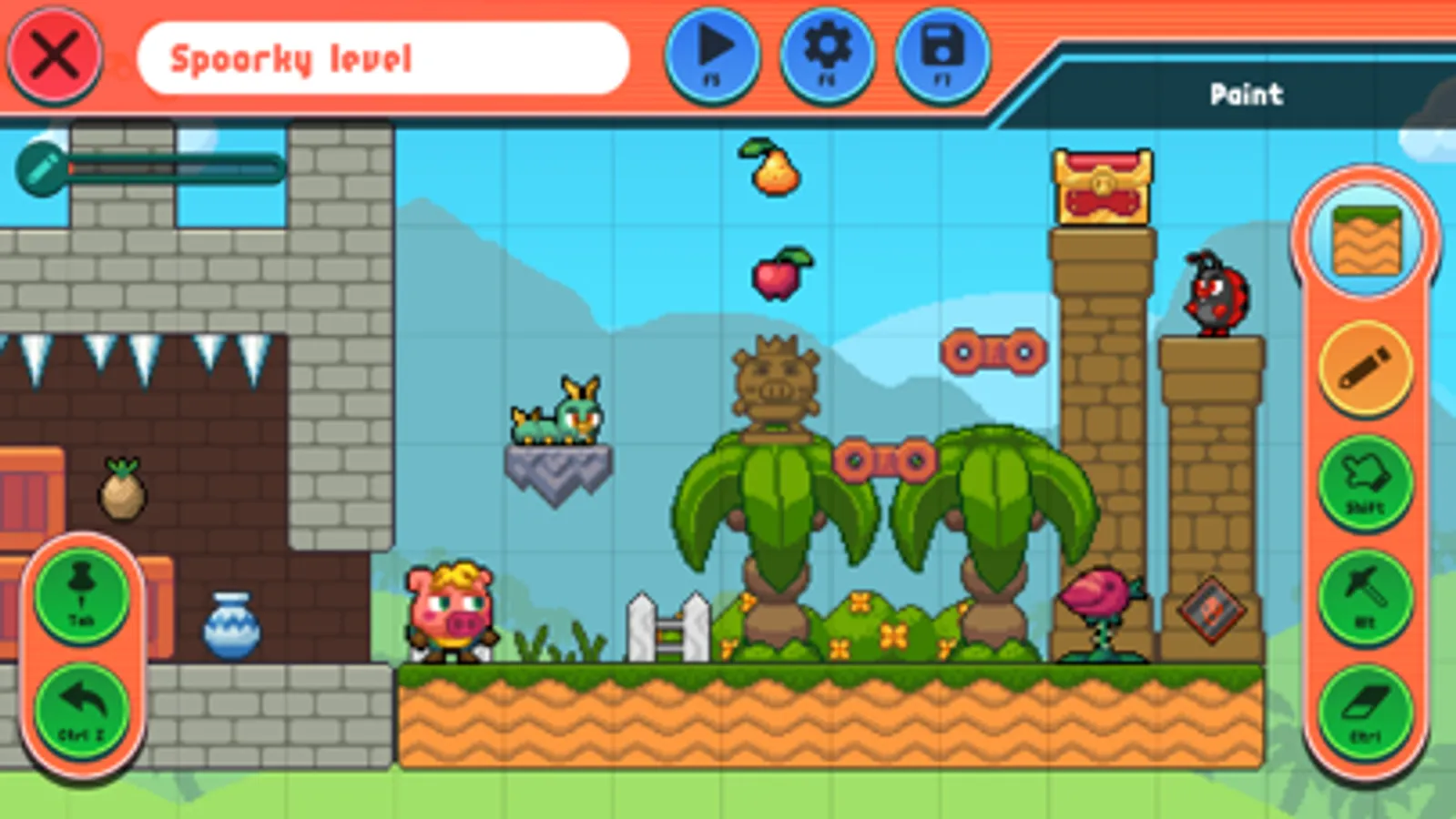 - Level editor. Create your own levels with a variety of traps, constructions, scenery... Publish your creations so that the community can compete against you!