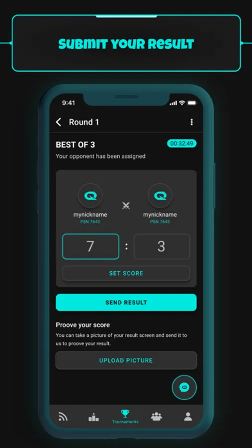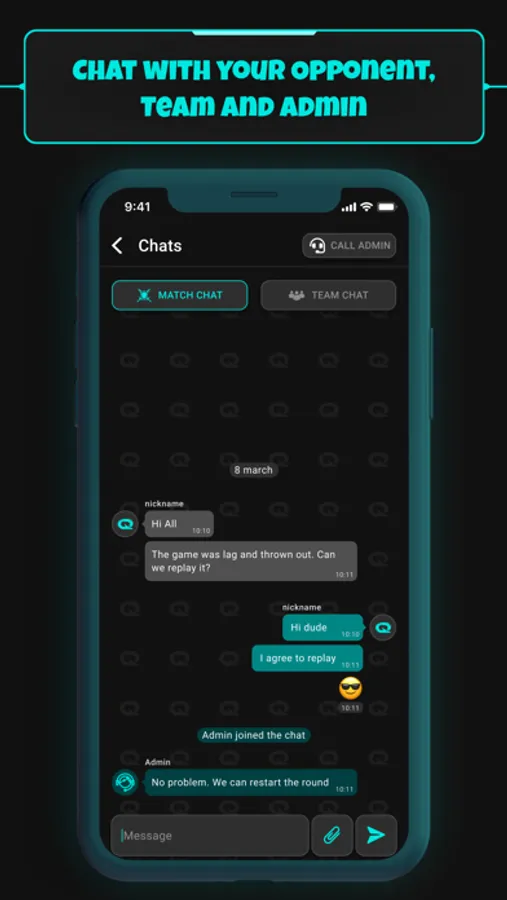 In-app chat allowing for you to reach out directly with your opponents or event admins.