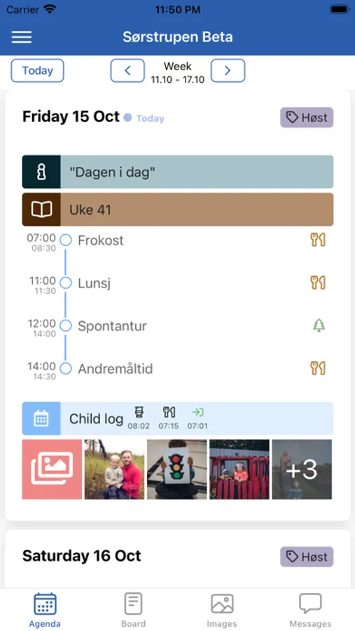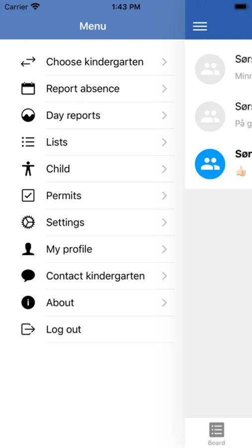 Through “boardposts” the kindergarten can send messages to all parents, or submit a short daily report with information about their day.