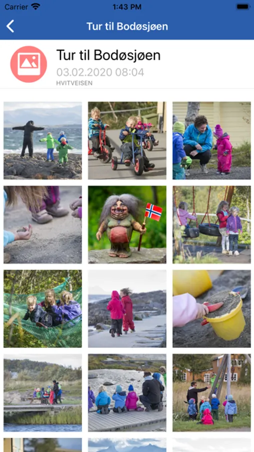 The kindergarten can create albums and post pictures from activities, trips or everyday moments in Kidplan. This will be listed out in the application, which you as a parent can see when you log in. This way you will see and get information about the child's daily life.