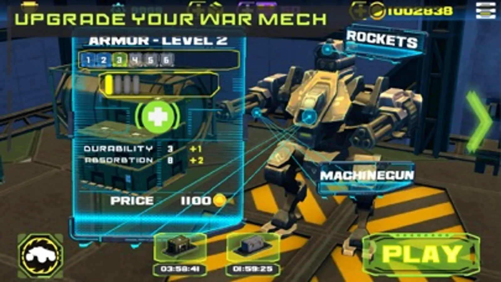As you progress in the level you will reach certain areas where the enemies will overwhelm you - fear not! Each attempt earns you coins from the distance you cover and the enemies you eliminate. You will also win different types of prize chests which give you more gold and Parts. Collect enough parts and unlock stronger Mechs and Vehicles.