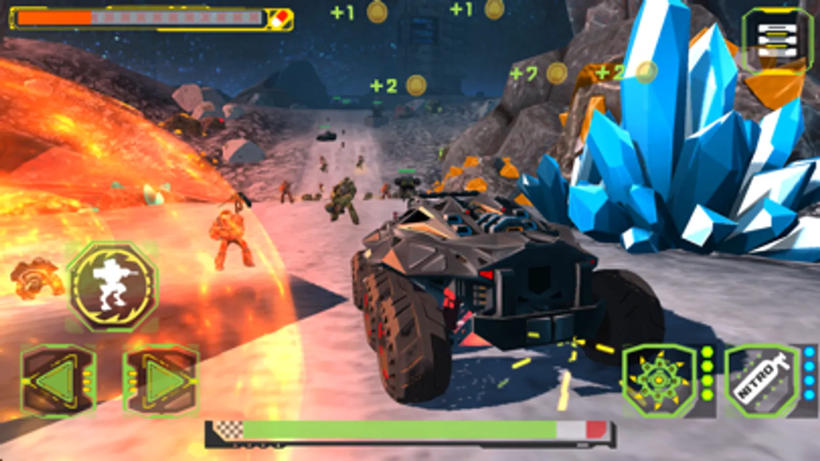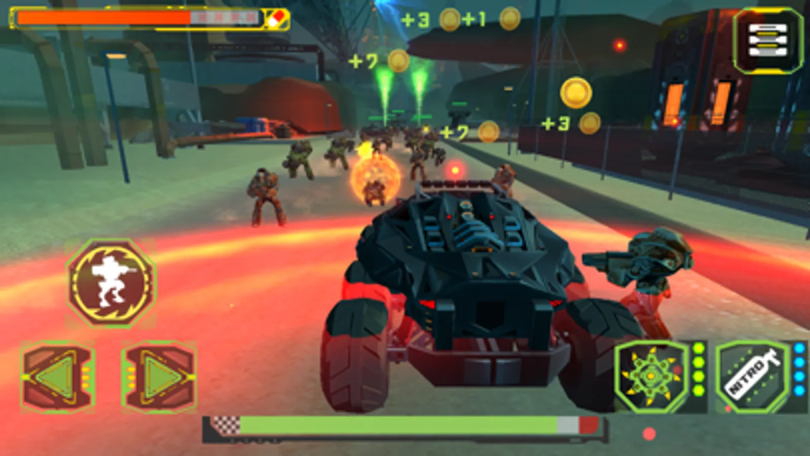 The Vehicle - your armored vehicle is perfect for running down hordes of droids, It is unarmored so it's not effective against heavy enemies. You can upgrade the vehicle's armor and Nitro which gives you a short but powerful boost in speed and acceleration.