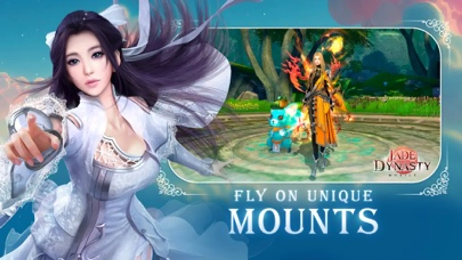 On your adventures, you will visit each and every part of the Jade Dynasty Mobile universe. The majestic capital city of Yangcheng, the Abode that houses your mentors and friends, individual school territories that keep their secrets safe from wandering eyes, tiny villages and ancient cities lost to the wilderness, and, of course, the Edge of Immortality, where the strongest of warriors meet to battle for supremacy. Employ an esper that will help you in your travels — a special item that takes its owner to the sky, like a great sword that grants you the power of unlimited flight!