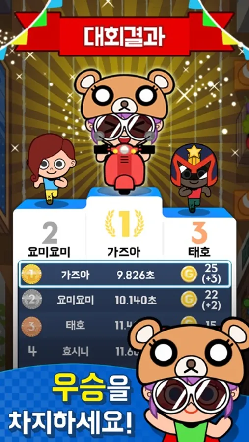 엎치락뒤치락 경쟁하고 캐릭터를 키우세요!