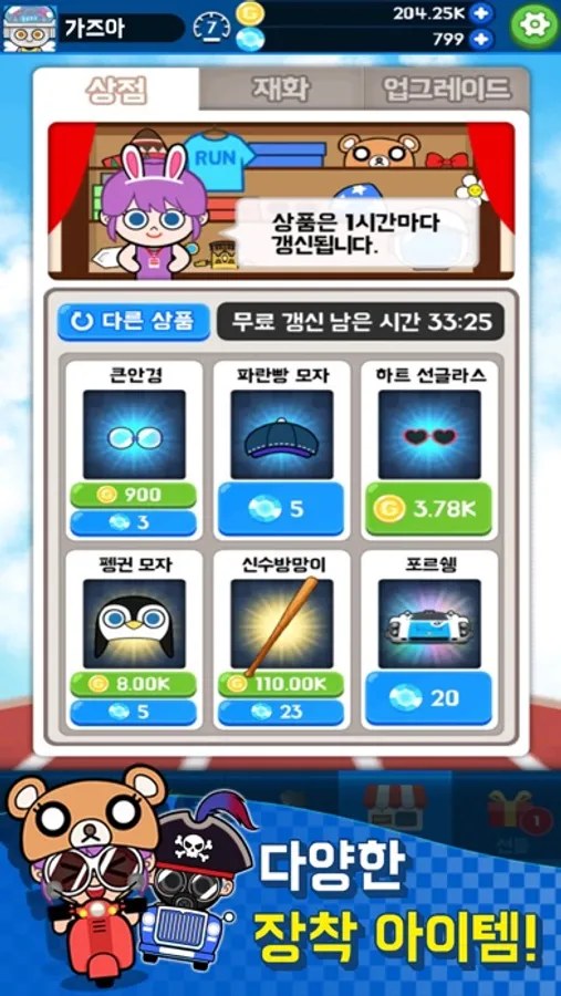 내 캐릭터를 멋지게 업그레이드 하세요!