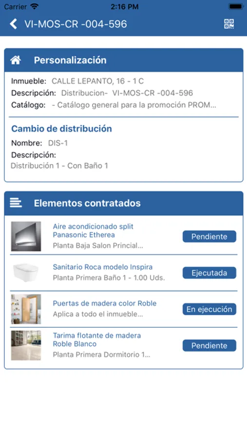 - Visualización por parte del promotor de las personalizaciones y reformas que hay en las promociones a las que tenga acceso.