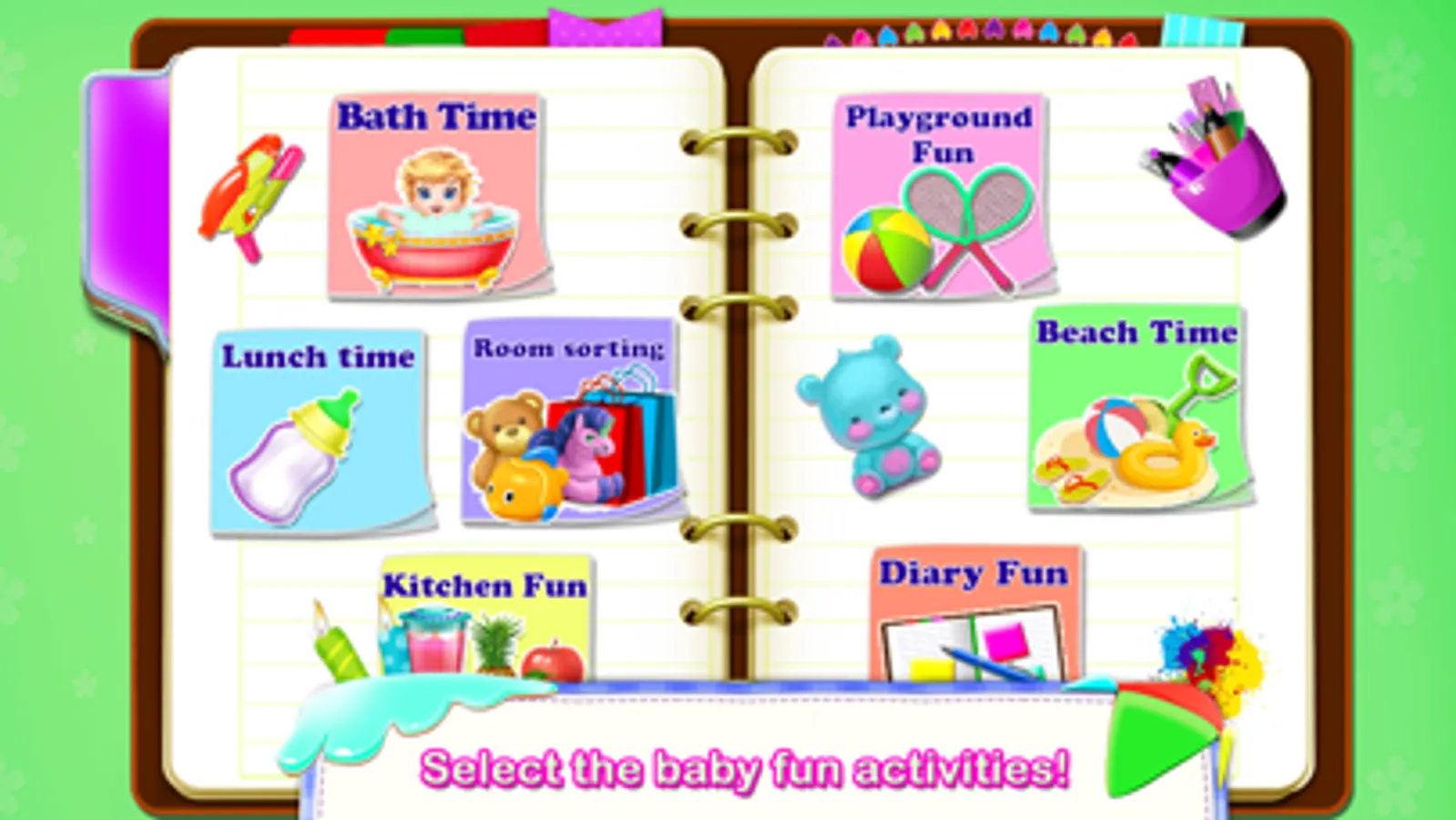 And after you’ve had a wonderful day together, you can fill the diary with wonderful memories of your time together. But best of all, you can do it all again tomorrow with Babysitter Baby Care Fun Job!