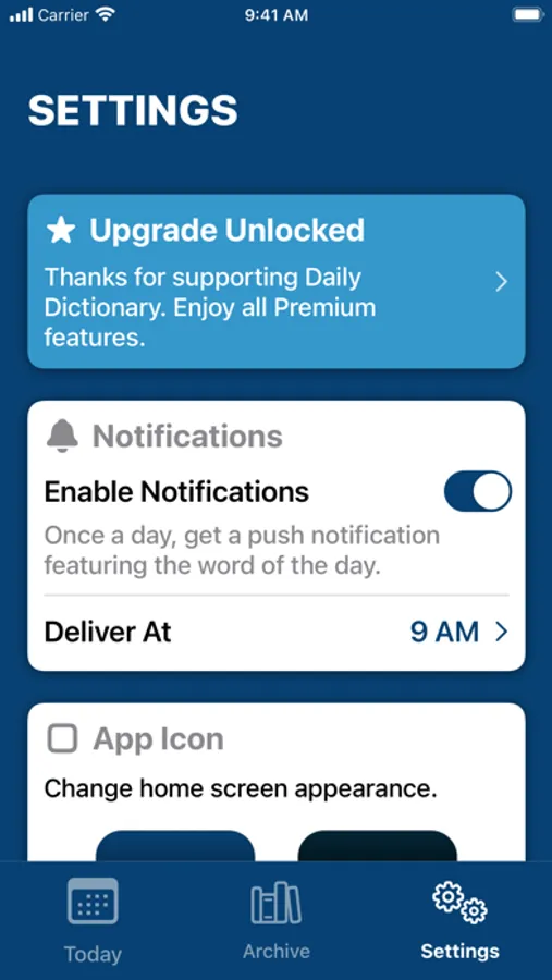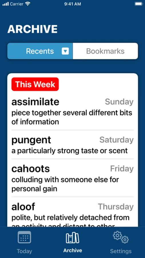 Inside the app, view today’s word and look back to the past few weeks for even more inspiration. Upgrade with a subscription to unlock Bookmarks, custom Apple Watch preferences, and advanced settings. Upgrades directly support the developer and the people who are writing the dictionary, featuring a new word, every day.
