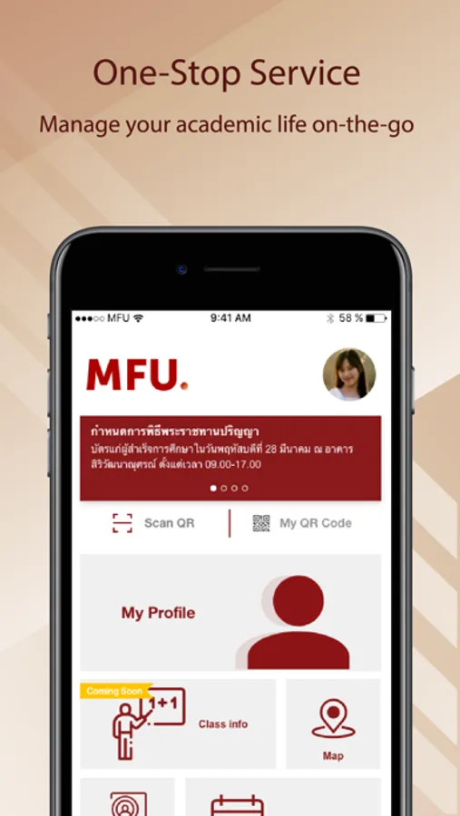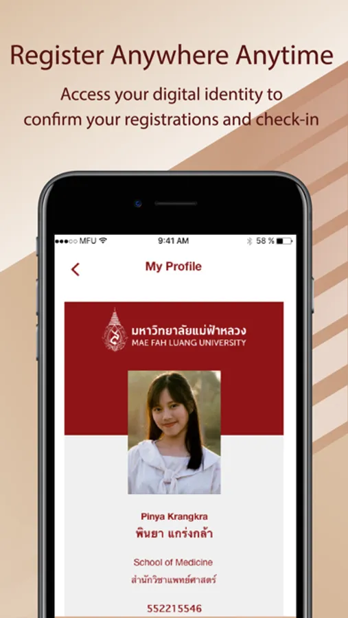 - Personal QR code virtually representing you as student of Mae Fah Luang