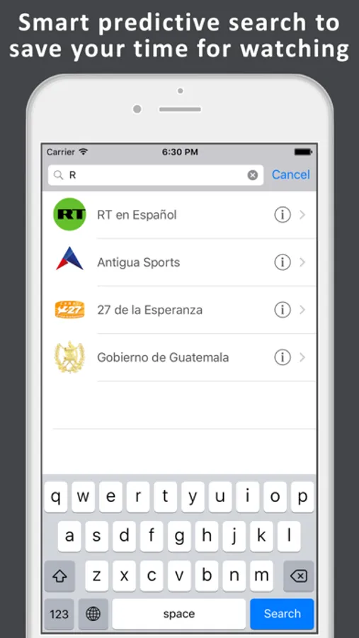 "TV de Guatemala" does not include any stored footage, recorded videos etc. There are no any videos in "TV de Guatemala". The "TV de Guatemala" does not and will not relay any channels. All data used in the "TV de Guatemala" can be found in the Internet. It is just combined in a single program. All descriptions and images used in the "TV de Guatemala" are the property of their respective owners. If you still have any questions about functionality of "TV de Guatemala" or the TV sources embedded into it, please write on the email noted on the app description in App Store