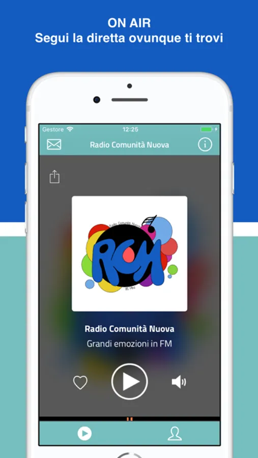 Con l’App di Radio Comunità Nuova puoi ascoltare la nostra diretta visualizzando anche tutte le informazioni sui brani trasmessi, a cominciare da Titolo, Artista e Cover dell’Album, e aggiungere quelli che più ti piacciono all'interno di una tua lista personale di brani preferiti.