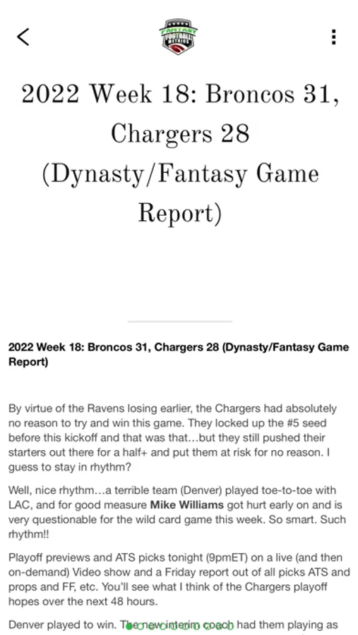 Access many hours and volumes of free fantasy (dynasty, IDP, keepers, auction, rookie drafts) and general football/handicapping analysis through our app, and our subscribers and clients can access their subscriptions and premium content via the app as well.