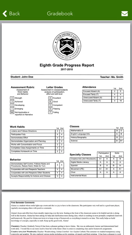 Your student's data will only appear if your child's teacher is using Report Card Maker. Ask your child's teacher if they are using RCM.