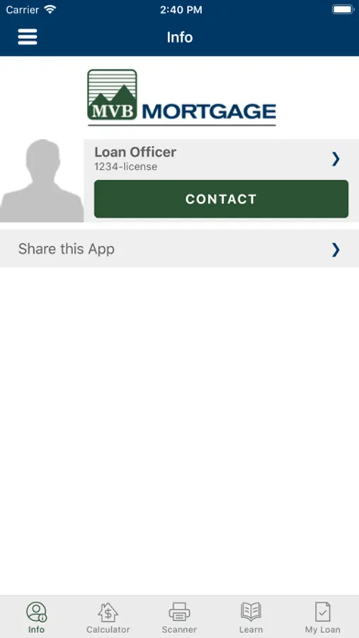 • Easily access contact information for your MVB Mortgage Loan Officer and real estate agent and share with your family and friends.