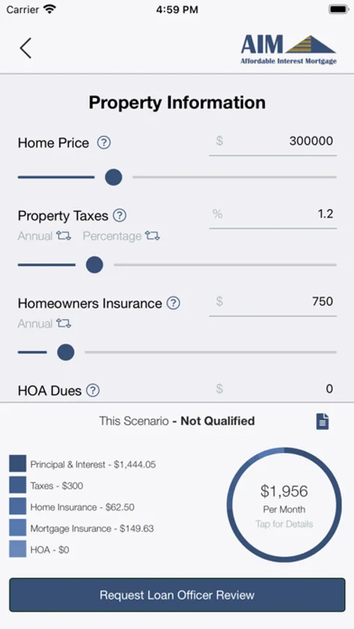 The TAKE AIM Mortgage app connects Home Buyers & Realtors with Loan Officers to learn which home loan they can pre-qualify for when searching for a home to purchase. If a home buyer is pre-qualified, they can print an official Pre-Approval letter to use when placing an offer on a house.