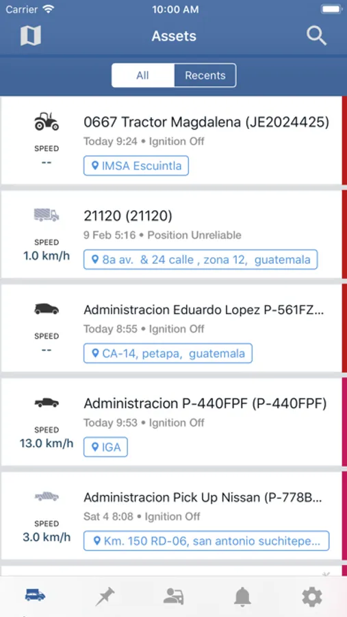 Ve la posición actual de los dispositivos rastreados, historiales de posición (viajes), puntos de referencia, geo-cercas y alertas.