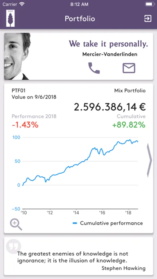 The Portfolio app of Mercier Vanderlinden lets customers easily, always and everywhere access the composition, performance and history of their portfolios.