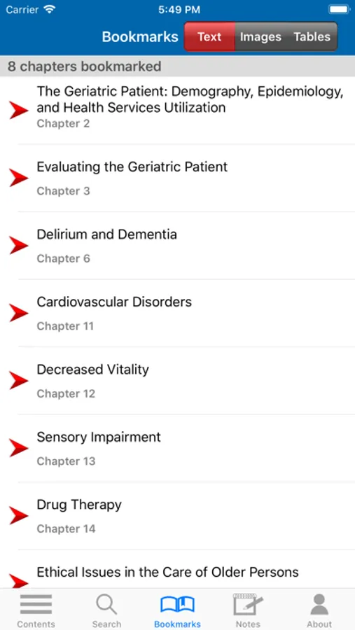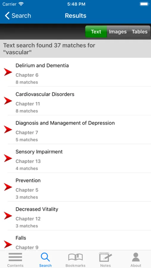 This app is easy to navigate, allowing you to browse the contents or search for topics. The search tool shows you suggestions that appear in the text as you type so it is quick and helps with spelling medical terms. It also remembers past search terms so you can go back to a topic or image very easily. You can also create notes and bookmarks separately for chapters and images to enhance your learning. You can also change the text size for easier reading.