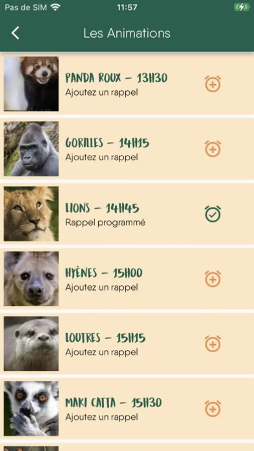 Ne manquez aucune animation de repas des animaux, vous serez averti en temps réel des rendez-vous avec les soigneurs
