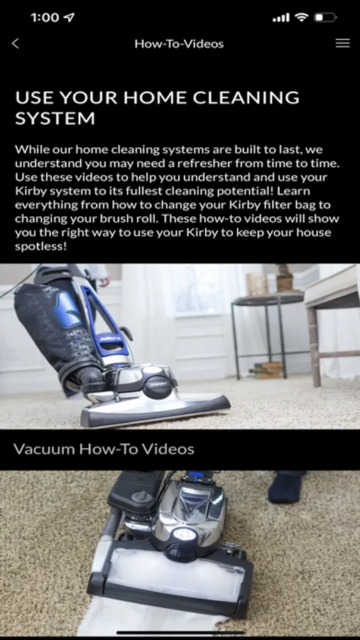 The Kirby Owner Resources App is here to provide Kirby Owner’s with product support, easy online shopping, and every Kirby owner manual right on your smartphone or tablet! This app is made for your convenience to easily connect you with how-to videos, frequent asked questions, and more, right in the palm of your hand. The Kirby Company strives to provide customers with the best cleaning experiences due to the system’s versatility, performance and long-lasting quality. This app is designed to assist all Kirby Owners and make sure they get the most out of their Kirby Home Cleaning System.