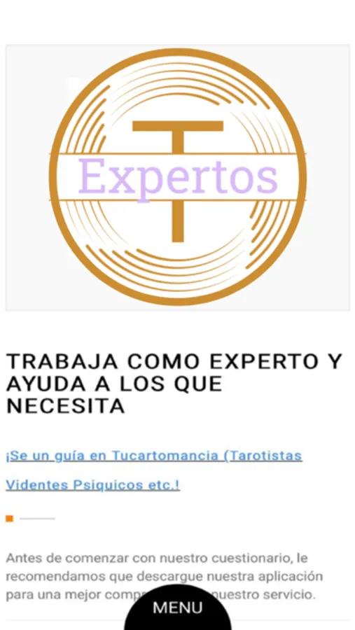 Este App es para los Expertos en Astrología, Numerología, Técnicas Energéticas como Reiki , Tarot, Pendulo, Oráculos Runas, Lectura de Posos de Café, Bola de Cristal, Quiromancia , Médiums, Videntes ,Cartomantes,Lectura de Velasque , y quiere unirse a Tucartomancia y esta habilitado en ayudar a la gente y de a responder a sus preguntas.