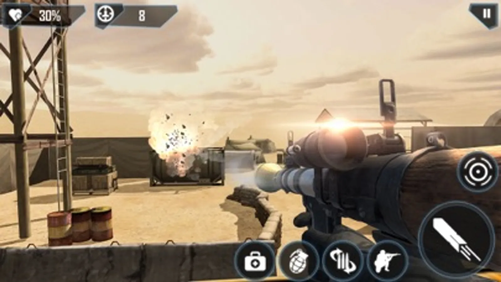 Battle intense! You will experience a sudden attack behind enemy lines around altered locations. As this modern battlefield game goes ahead the excitement will increases. Finish all the terrorist strike missions by wiping all the enemies patrolling around. Every new mission will come with a challenging strike back by terrorists; you need to attack as a supremacy bravo shooter like an army fury commando to show your superb combat shooting skills. Your enemies are not aware of your presence in their zone. So, execute your best tactical attack abilities. You have stunning graphics, advanced weaponry, gun shooting, full combat story and 3D fire effects, etc.