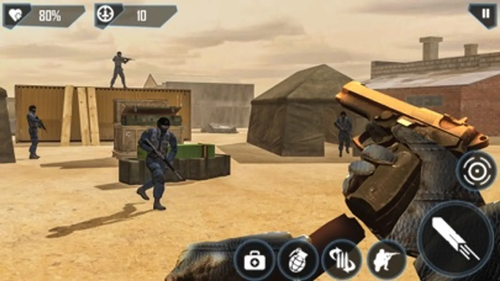 Modern Battlefield FPS Combat is an action-packed fps army shooting game. The military base where you are located is occupied by terrorist groups, Now as you are a solitary combat shooter. Your job is to conquer all the terrorists discreetly. In gun games for free, this is the modern battlefield game in the desert, where your territory has been attacked by fire combat warriors and with the most powerful shooting equipment. Fight as frontier US frontline army commando and take down terrorists; prevent terrorist strikes back. It is not just a gun shooting war or fearless weaponry fight game, it's a completely new dimension into the war and exaltation fps offline shooting game. The fps commando on real combat mission you have been chosen as a special forces commando, weaponry, supremacy, and tactical shooter by our US army special forces - trained to strike wicked terrorists. These special forces rule by fearless fighters the men like you.