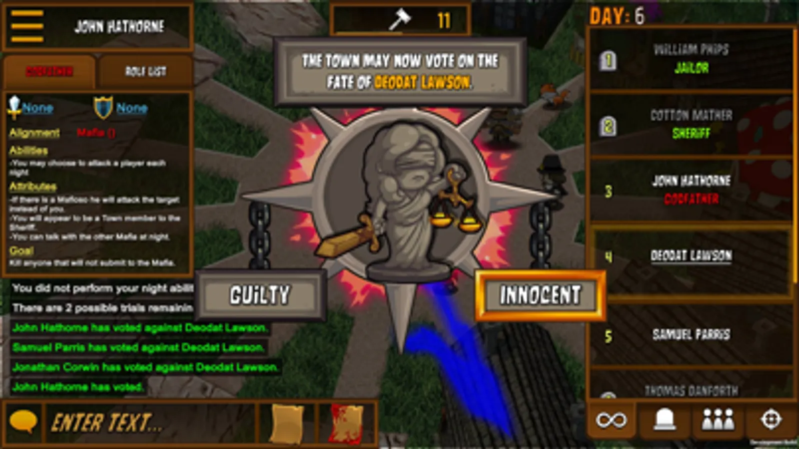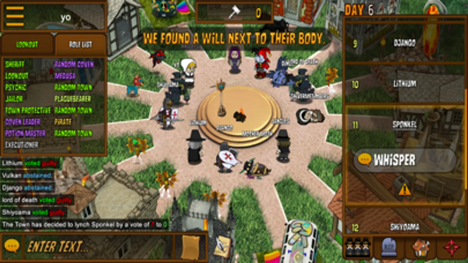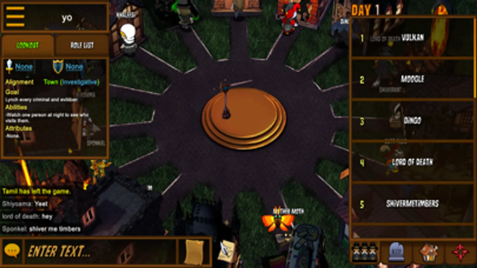 The game ranges from 7 to 15 players. These players are randomly divided into alignments – Town, Mafia, Coven, Serial Killers, Arsonists and Neutrals. If you are a Town member (the good guys) you must track down the Mafia and other villains. The catch? You don’t know who is a Town member and who is a villain. If you are an evil role, such as a Serial Killer, you secretly work against the town members in the veil of night and try to avoid getting caught.