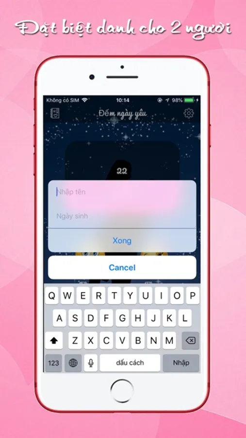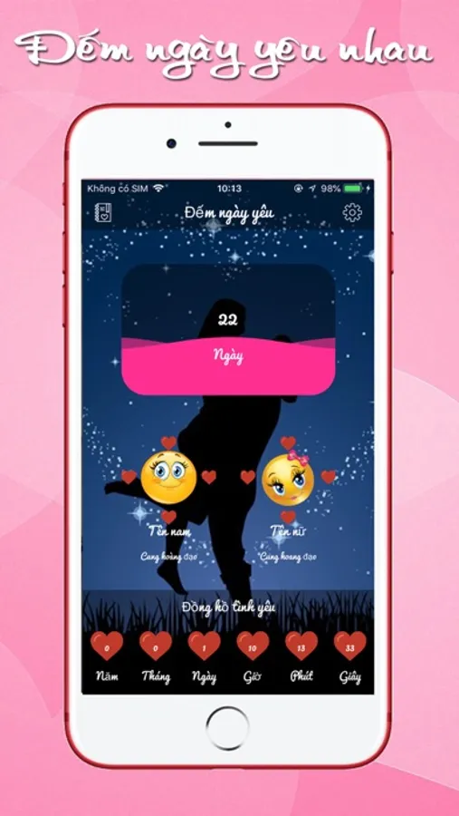 Ứng dụng Đếm ngày yêu nhau 2018 - Nhật ký tình yêu sẽ giúp bạn xem ngay thời gian yêu nhau, đếm ngày yêu nhau, tính ngày yêu nhau thật nhanh chóng, đếm số ngày mà các bạn đã ở bên nhau. Thật là thú vị!