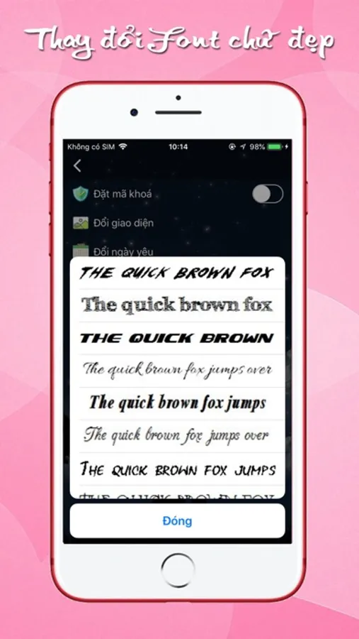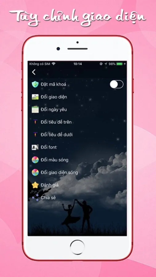 - Các tính năng tuỳ biến về giao diện khác: đặt ảnh cặp đôi làm avatar trong ứng dụng, chọn font chữ đẹp, thay đổi tên - đặt biệt danh cho 2 người,...