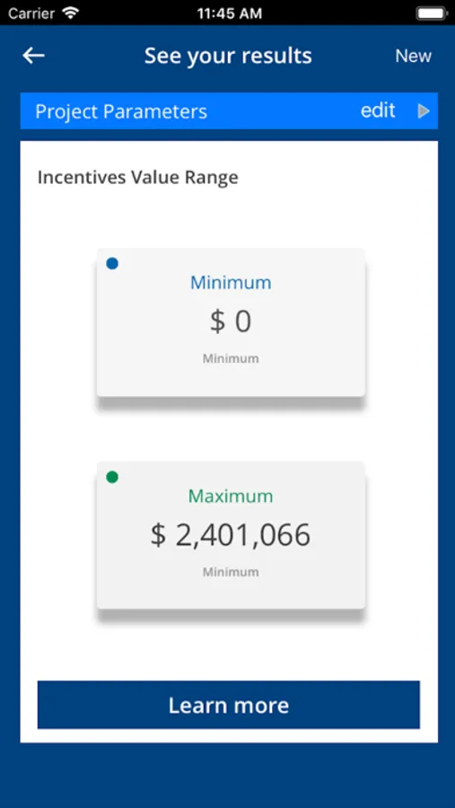 These results from the incentive calculator are the aggregate of the streams of incentives (subsidies) that are estimated over the entire benefits’ lives, assuming that the company follows a rigorous process intended to maximize incentives value from the beginning of the planning stages of the project.