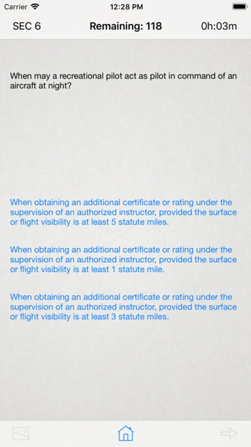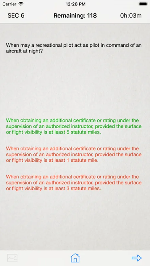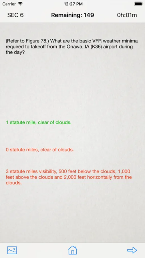 Test Mode - Simulates the test you are going to take at a FAA Knowledge Test Center. In this mode, you are asked 50 questions that are pulled from the entire question bank.