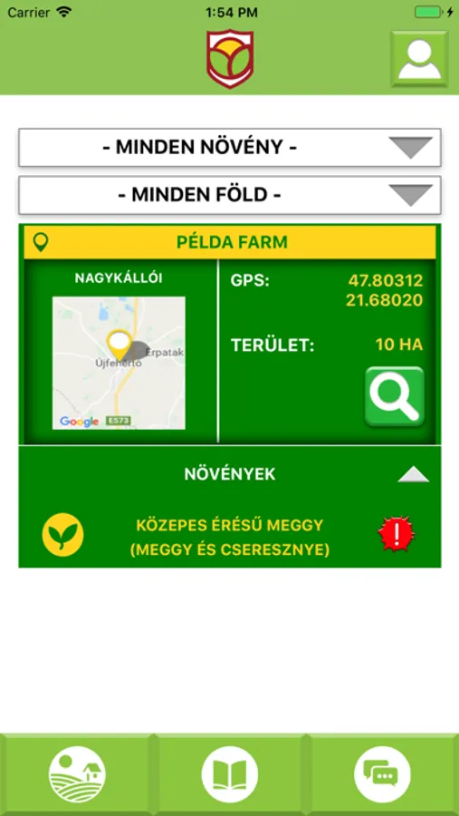 A MacroFarm alkalmazás célja, hogy segítse az agráriumban dolgozók munkáját terület és növénykultúra specifikus adatokkal, előrejelzésekkel.