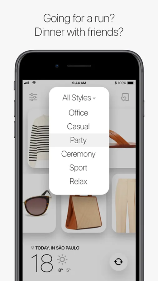 • Styles - Quickly pick the style you want to wear directly from the home screen of the app. (Office, Casual, Party, Ceremony, Sport or Relax)