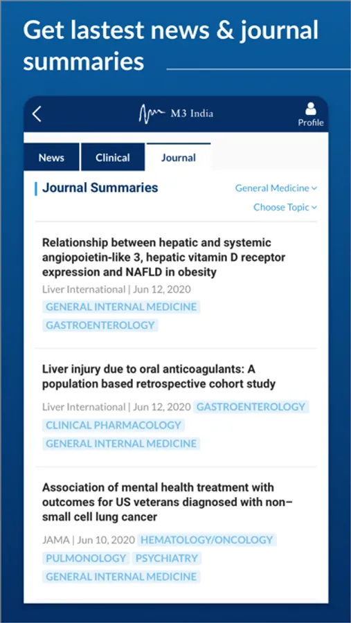 Short summaries from most important Journals and Clinical news by specialty, Expert articles, General news and happenings related to Indian Doctors