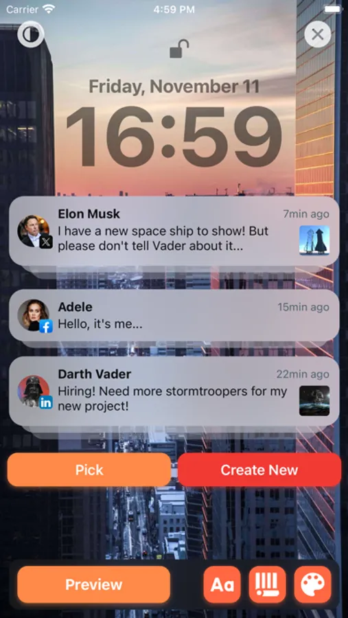 Buy ьщку packs in order to simulate notifications from all of your favorite messengers, social networks and web-services!