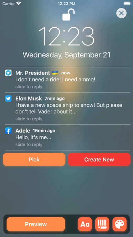 • Get more FUN by switching between iOS 16, iOS 15, iOS 13, iOS 11, iOS 10 and iOS 9 Notifications Styles;