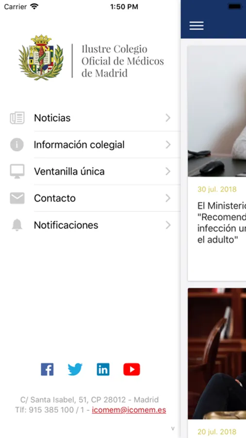 El Ilustre Colegio Oficial de Médicos de Madrid pone a disposición de sus colegiados y de los ciudadanos en general su App móvil para facilitar el acceso a los contenidos que ofrece.
